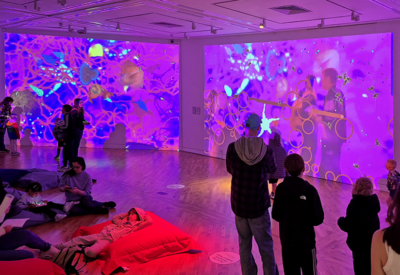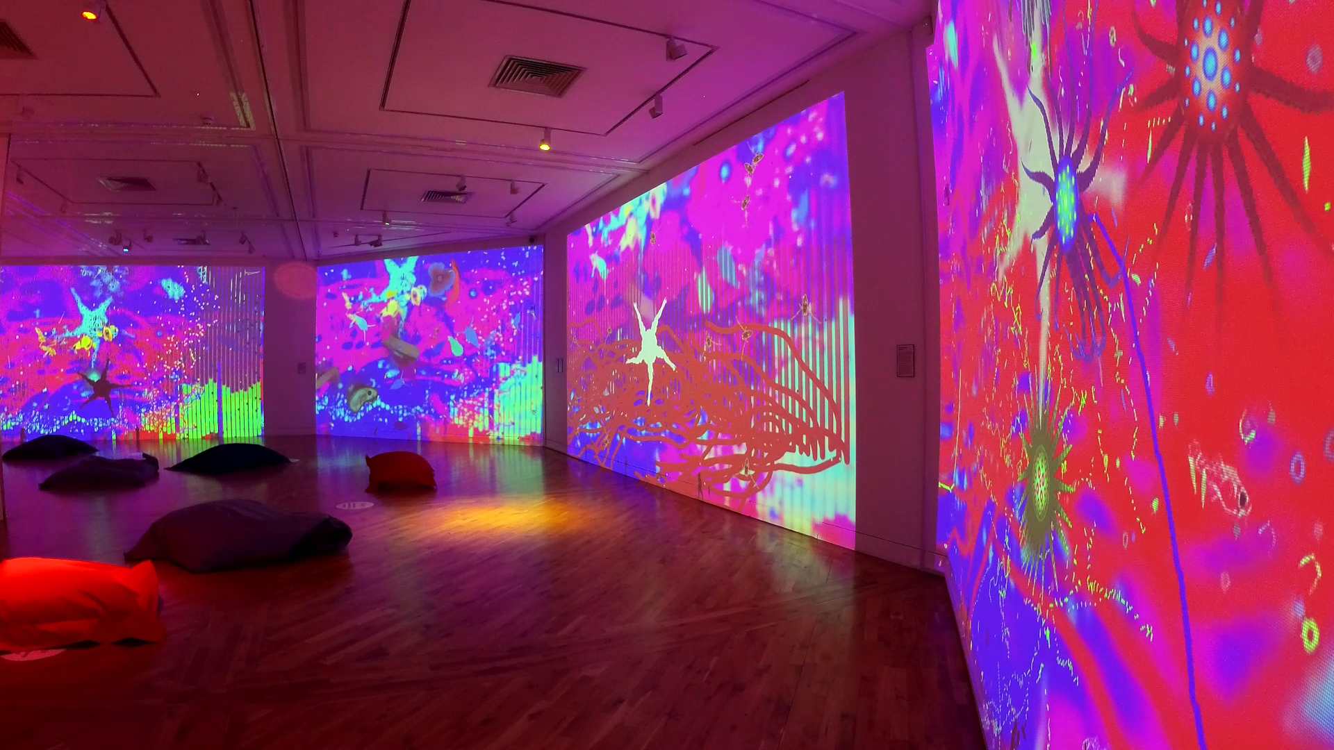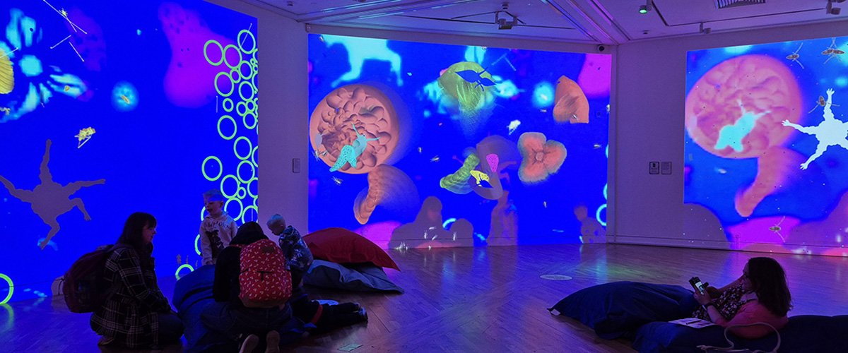 Not all interaction needs to be crash, bang, wallop! Sometimes a slower engagement can be a nice contrast. By providing beanbags and soft furniture in a cinematic setting, your audience will park themselves down, relax, and go with the flow as they immerse themselves in the small, subtle changes. Psychologists call these sorts of effects “soft fascinations”, like the shifting shape of clouds, or the fluttering of leaves on a tree, or a flickering candle. Being in nature has been shown to have a strong positive effect on human health and wellbeing. This effect is repeated even if the action is digital, i.e. not real nature. Which is an extraordinary discovery. Not only are our shows artistic, entertaining and informative they are also good for your health!